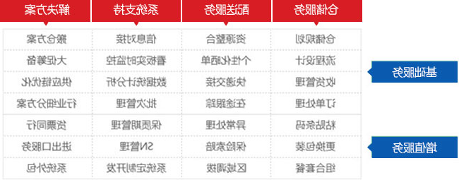 根据客户需求及行业特点,J9COM集团 物流提供包括仓储、配送、系统及行业解决方案等服务,形成个性化服务矩阵: